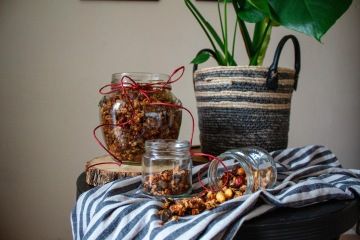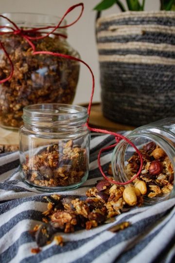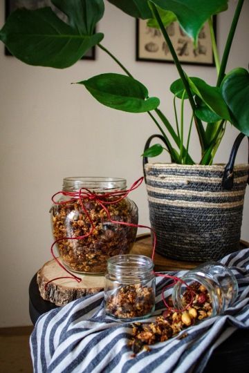 - Placku pečte v troubě vyhřáte na 160 °C 15 minut. Po vyndání směs promíchejte a vraťte do trouby na dalších 15 minut. Nechte vychladnout a uložte do sklenic. Vydrží vám minimálně 2 měsíce, ale toho se nebojím.