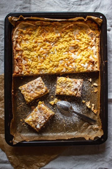 Jak vznikl název těchto řezů nikdo neví. Moje romantická představa je, že dech hraběnky byl lehounký jako sníh a voňavý jako jablka v koláči. Vždycky si vzpomenu na paní kněžnu z babičky od Boženy Němcové. Ve starých kuchařkách už recepty na podobné koláče najdete, jen se jmenují trochu obyčejněji, a tak kdo ví? Třeba některé hraběnce toliko zachutnal až byl obyčejný koláč povýšen do stavu hraběcího! Recept je od babičky Saši z Vrchlabí, tak ji tímto zdravím!