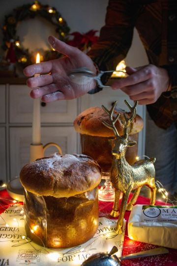 Dal by se přirovnat naší tradiční vánočce. Bývá ale bohatší o spousty kandované kůry rozinek a mandlí, které v případě, že nemáte rádi, můžete nahradit čokoládovými pecičkami. To je pak teprve Pane to jo! Recept se může zdát zprvu trochu složitý, ale není se čeho bát. Na začátku si všechno pěkně připravte a pak už jen kompletujeme, kyneme a čekáme a na závěr pečeme. Recept vznikl ve spolupráci si La Formaggeria Gran Moravia.
