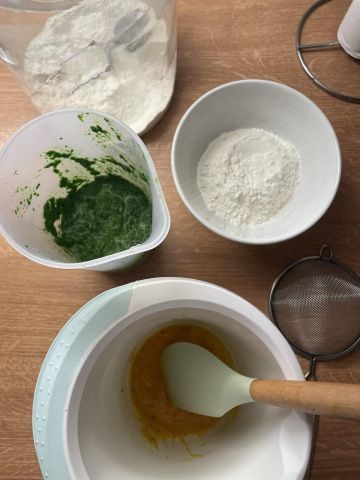 - Žloutky smíchejte se špenátovou směsí, lžící oleje a prosátou mouku.